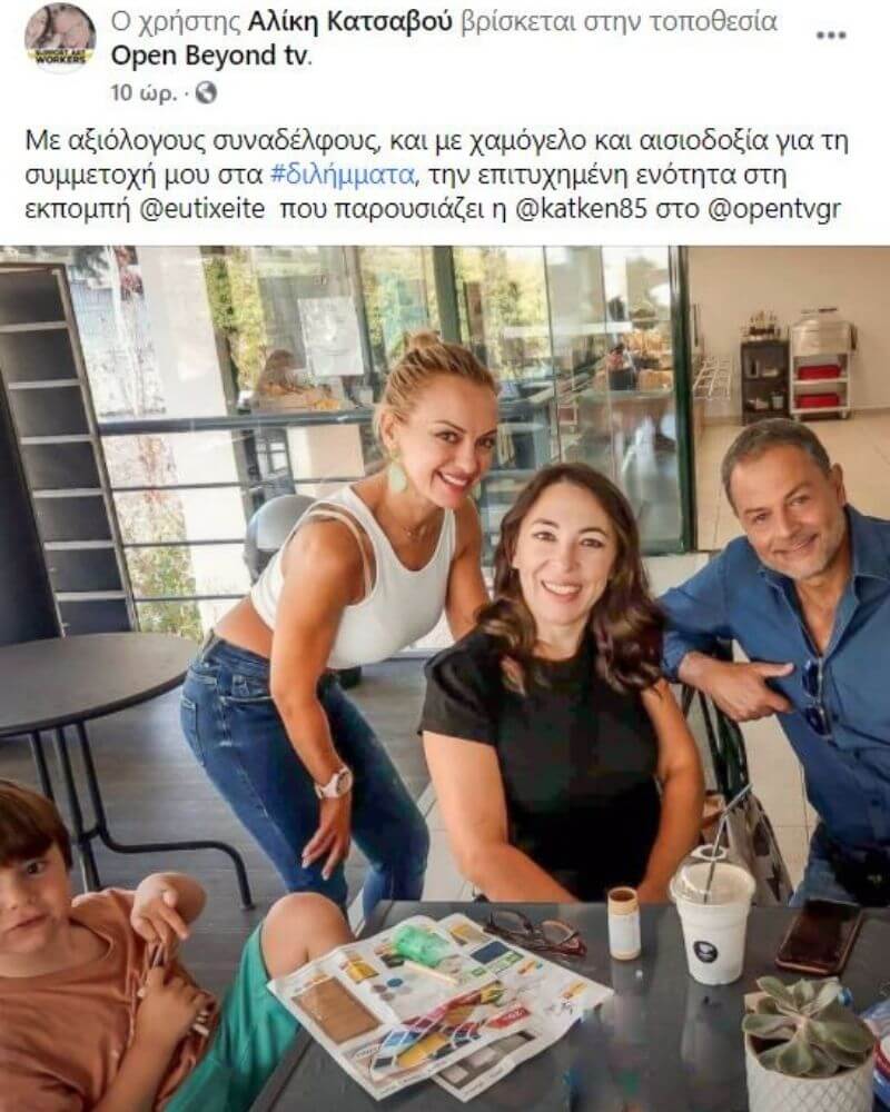 Η Αλίκη Κατσαβού θα είναι μία από τις ηθοποιούς που θα βλέπουμε πλέον στα «Διλήμματα» και το ανακοίνωσε η ίδια: «Με αξιόλογους συναδέλφους, και με χαμόγελο και αισιοδοξία για τη συμμετοχή μου στα #διλήμματα, την επιτυχημένη ενότητα στη εκπομπή @eutixeite που παρουσιάζει η @katken85 στο @opentvgr».